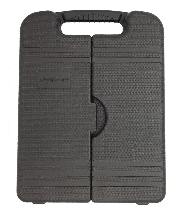Acompanha uma maleta plástica dobrável, que mantém todas as peças organizadas e fáceis de transportar.