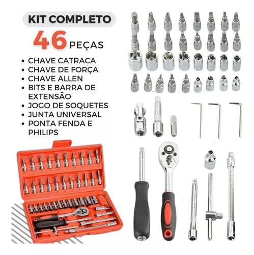Composto por 46 peças cuidadosamente selecionadas, este conjunto é ideal para manutenções rápidas e precisas.